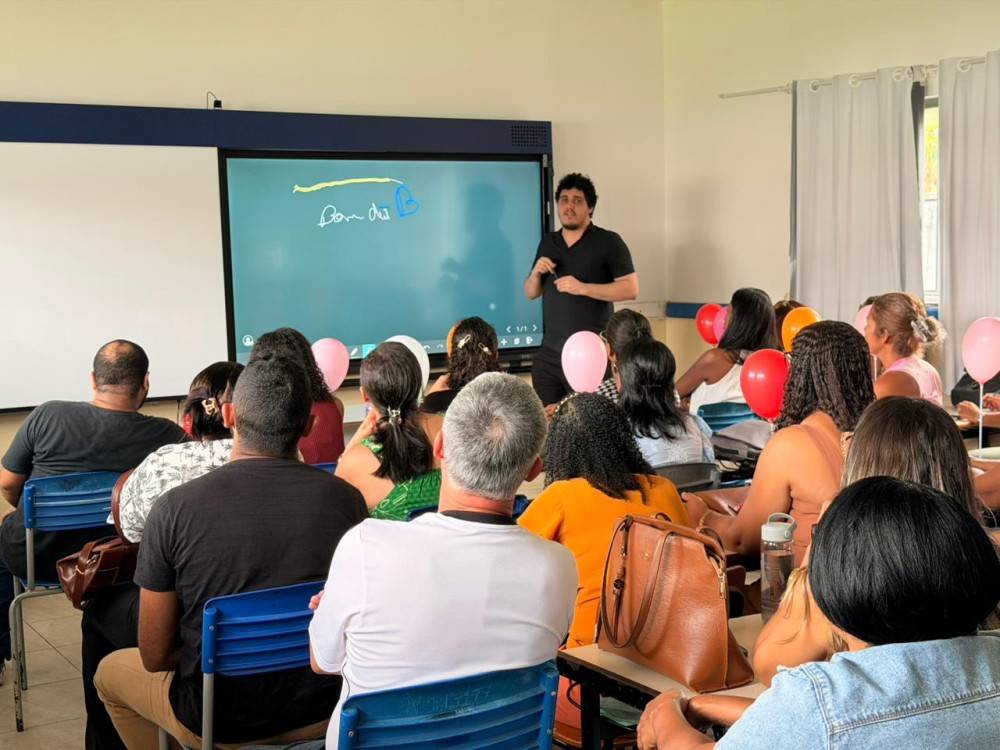 — Crédito: Ubatã NotíciasO encontro reuniu professores, diretores e coordenadores pedagógicos. Durante a explanação, o palestrante Gabriel Silva apresentou as funcionalidades do equipamento, destacou as dinâmicas de uso em sala de aula e explicou como a ferramenta pode potencializar o processo de ensino e aprendizagem.